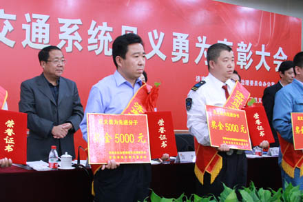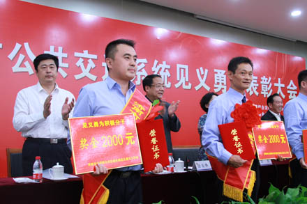 10月12日,,,,,在济南市公安局公交分局召开的“济南市公共交通系统临危不惧表扬会”上,,,,,交运出租驾驶员高广怀喜获“临危不惧先进分子”声誉称呼,,,,,交运出租驾驶员王湧喜获“临危不惧起劲分子”声誉称呼。。。。。。;;嵘,,,,,市公安局政委王健宣读了表扬文件,,,,,市委副书记雷杰、市政法委常务副书记徐春华等向导为获奖职员揭晓了声誉证书。。。。。。